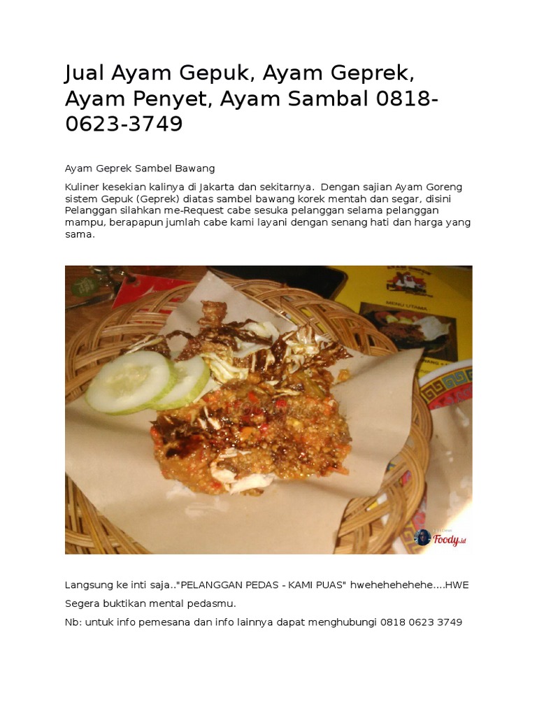 Jual Ayam Gepuk Ayam Geprek Ayam Penyet Ayam Sambal 0818 0623 3749